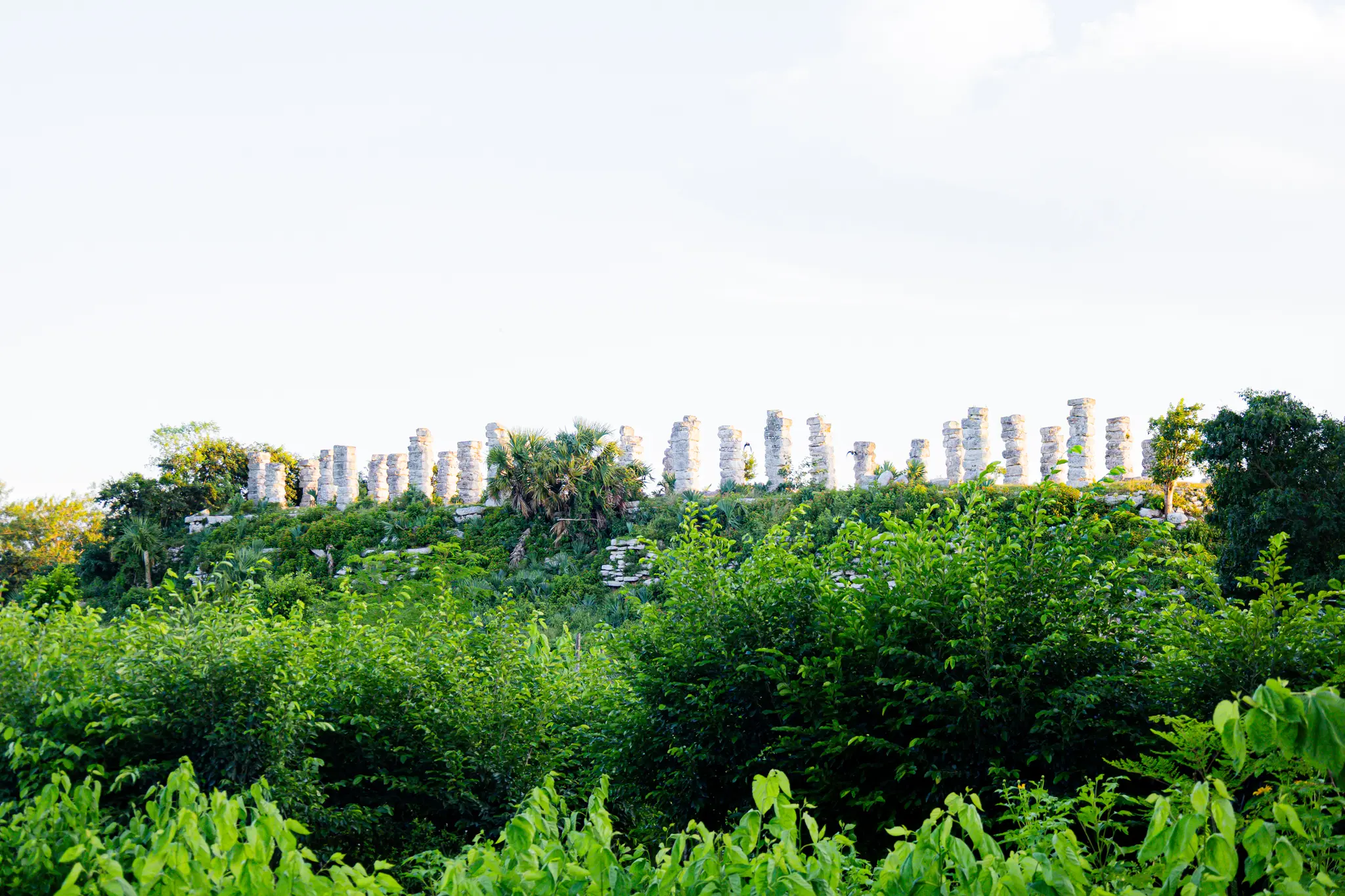 A un costado de la casa principal de la hacienda se encuentra la zona arqueológica, entre ésta el edificio de las columnas, llamado así por sus pilastras y que se levanta frente a una explanada, la cual ha sido estudiada y restaurada por el INAH recientemente. La construcción tiene una escalera casi monumental, arriba se conservan 33 pilastras de piedra en 3 hiladas, desde donde se obtiene una vista general del sitio.